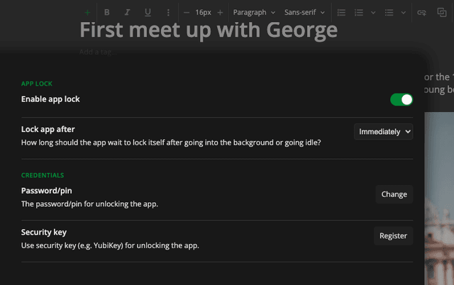 Working from a café? Forgot to lock your device? No worries. The app lock automatically locks your notes database so no one can pry into your private thoughts.